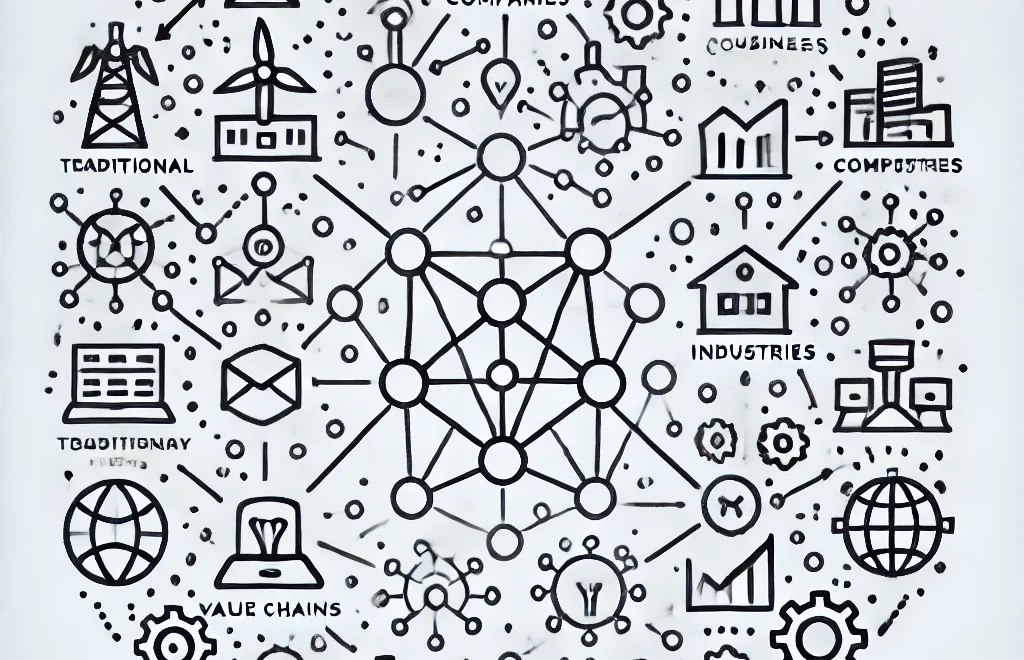 Der Begriff „Business-Ökosystem“ beschreibt, wie Unternehmen und Branchen durch die Digitalisierung immer stärker vernetzt werden und ihre Grenzen verschwimmen. Bei einem hohen Grad an Vernetzung und Automatisierung funktionieren diese ökonomischen Netzwerke teilweise oder vollständig selbstorganisiert. Aus traditionellen Wertschöpfungsketten entstehen so dynamische Ökosysteme.