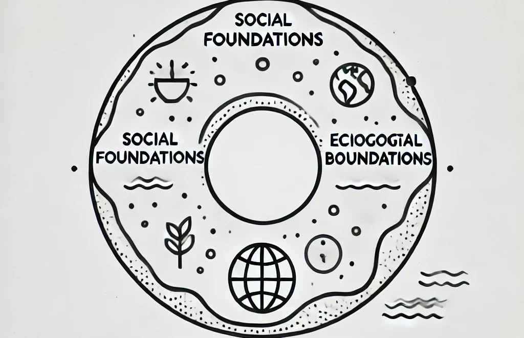 Die Donut-Ökonomie ist ein ganzheitliches Wirtschaftsmodell der britischen Ökonomin Kate Raworth. Es bettet unsere Wirtschaft in planetare und soziale Grenzen ein und definiert einen Raum, in dem wir leben und wirtschaften können, ohne unseren Planeten zu gefährden.