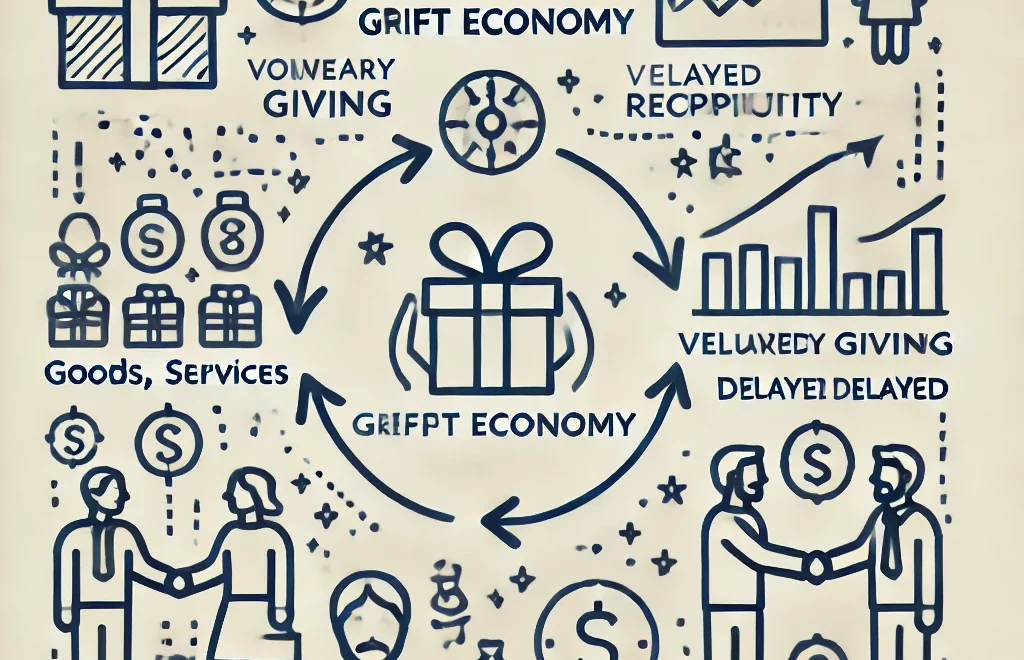 Gift Economy bedeutet Schenkökonomie. Gemeint ist eine Wirtschaft, die nicht auf Tausch und Handel basiert, sondern darauf, dass Menschen oder Organisationen freiwillig in Vorleistung gehen, ohne unmittelbar dafür vergütet zu werden.