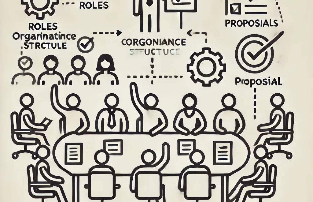 In einem Governance-Meeting werden zum Beispiel Rollen geschaffen und verändert sowie Regeln aufgestellt. Alle Teilnehmer*innen können Proposals, also Vorschläge, einbringen, darauf reagieren und ihre Perspektive einbringen.