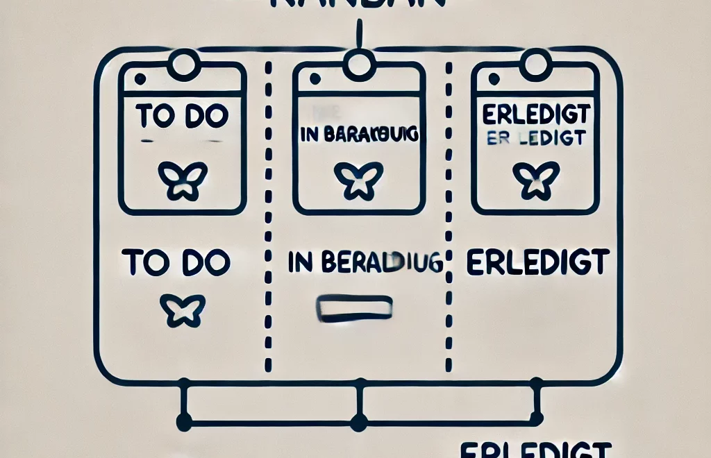 Heute werden Kanban-Karten in der Regel am sogenannten Kanban-Board genutzt, mit dessen Hilfe der Arbeitsstand visualisiert wird. In seiner einfachsten Form hat das Board drei Spalten: To Do, In Bearbeitung und Erledigt. Die Projekte oder Aufgaben werden in die jeweils passende Spalte eingetragen und entsprechend ihrem Arbeitsstand weitergeschoben. So lässt sich z.B. ablesen, an welchen Aufgaben das Team gerade arbeitet und welche permanent liegen bleiben.