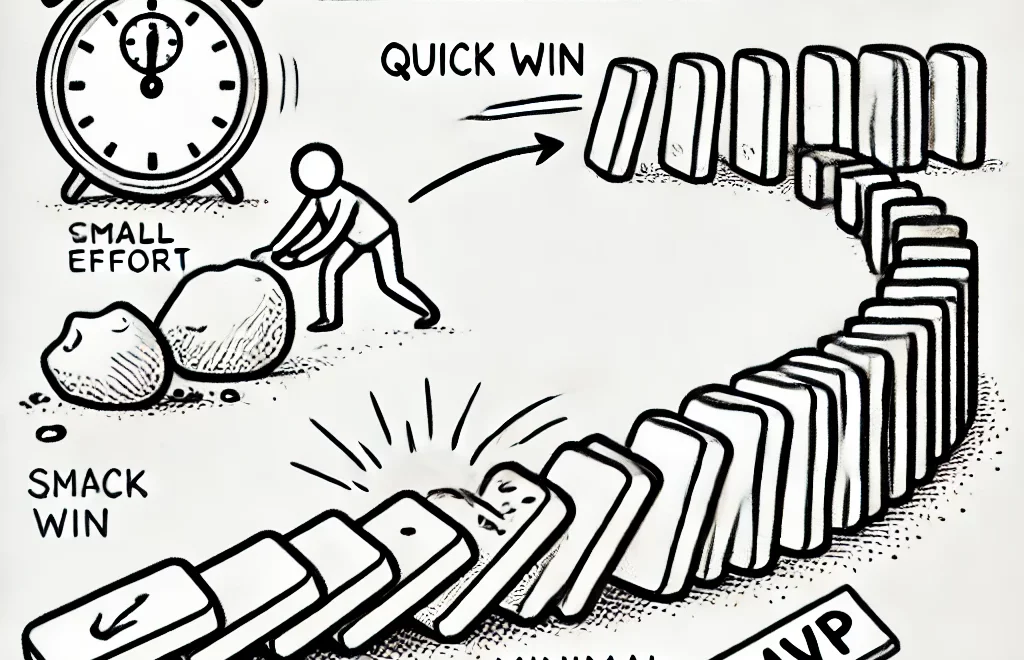 Ein Quick Win ist ein schneller Erfolg oder ein schnelles Ergebnis mit großer Wirkung und geringem Aufwand. Besonders in der schnelllebigen digitalen Transformation sind schnelle Resultate wichtig. Dabei hilft es, sich zunächst an einem Minimal Viable Product (MVP) zu orientieren, um schnell erste Erfolge zu erzielen.