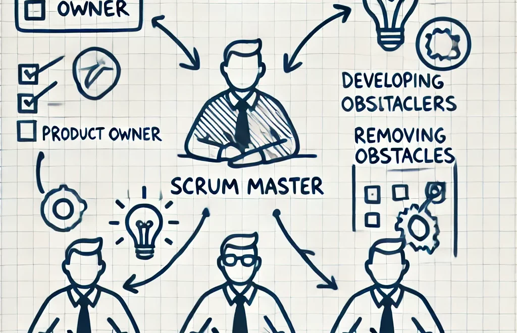 Im Scrum-Framework gibt es drei wichtige Verantwortlichkeiten: den Product Owner, die Entwickler*innen und den Scrum Master. Der Scrum Master ist Experte und Vermittler, verantwortlich für die Einführung und Einhaltung von Scrum sowie die Optimierung im Unternehmen. Er unterstützt den Prozess, coacht das Team und sorgt dafür, dass es ungestört arbeiten kann.