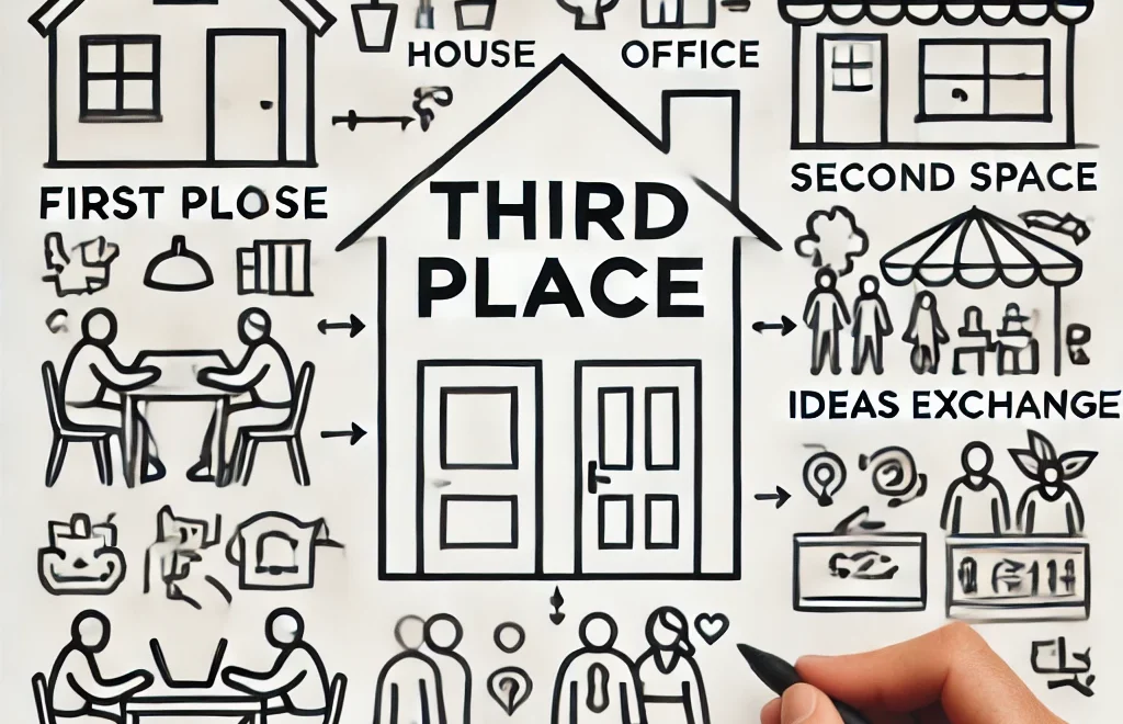 Third Place bedeutet „dritter Ort“ und stammt vom Soziologen Ray Oldenburg. Es handelt sich um Orte, die neben Zuhause (First Place) und Arbeit (Second Place) als Ausgleich dienen. Third Places sind (halb-)öffentliche Orte, an denen Menschen sich treffen, Beziehungen aufbauen, Ideen austauschen und ihr Gemeinschaftsgefühl stärken. Beispiele sind Cafés, Museen, Parks oder Bibliotheken – Orte, die bewusst nichts mit Zuhause oder Arbeit zu tun haben.
